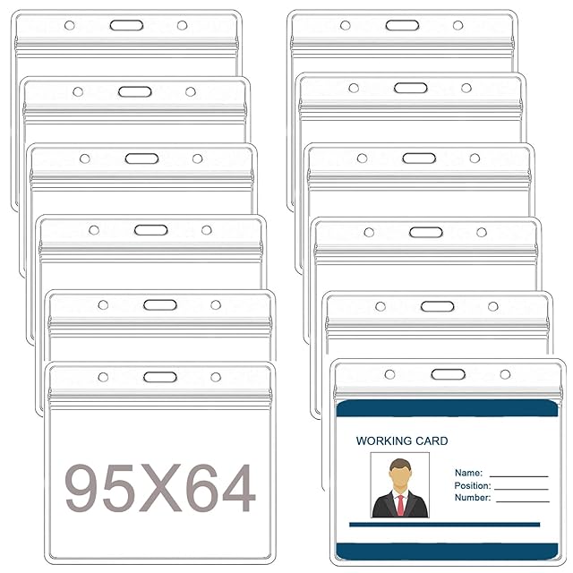 AMUU ID カード ホルダー 名札・ホルダー 12個入 名刺・IDサイズ ナフ社員証 定期入れ 吊り下げ イベント スタッフ パス ケース 入れ 首かけ 展示会 防水 横型 タイプ 内部95X64mm