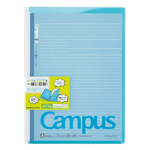 コクヨ ノート ノートカバー キャンパス A4 プリント収容ポケット付き ブルー ノ-621AN-B