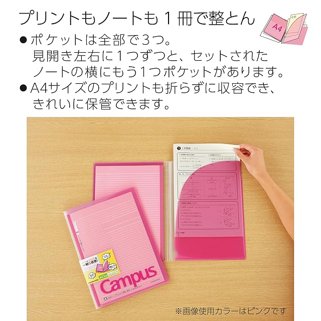 ノートとプリントを一緒に収容できるキャンパスカバーノートに、A4サイズが仲間入り