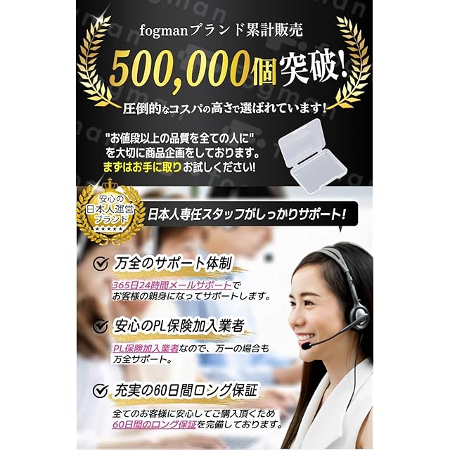 【安心の60日間返品返金】fogmanブランドより、迅速にお客様の元へお届けいたします。また本製品は購入から60日間の返品付き、万が一の際に備えてPL保険加入しております。商標登録第6354569号
