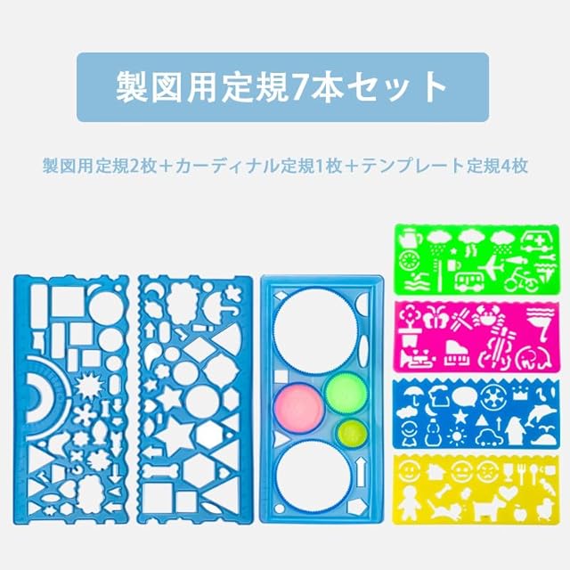 商品名:MINBOOT 定規 テンプレート 【7枚組】 定規セット 小学生 子供 絵画 多機能 お絵描き 描画ルーラー