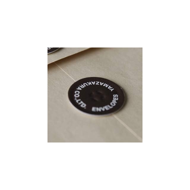 ハトメ金具などが要らず、シールタープで簡単に封筒に貼付が出来ます。