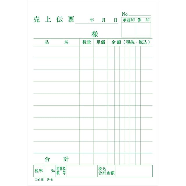 コクヨ(KOKUYO) 売上伝票 白上質紙 B7 縦型 100枚 テ-8: