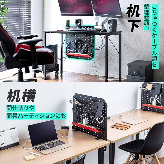 天板上に取り付けて 卓上収納ボード として使用したり、机横に取りつけて間仕切りのように使用したりと、自分好みにレイアウトが可能です。