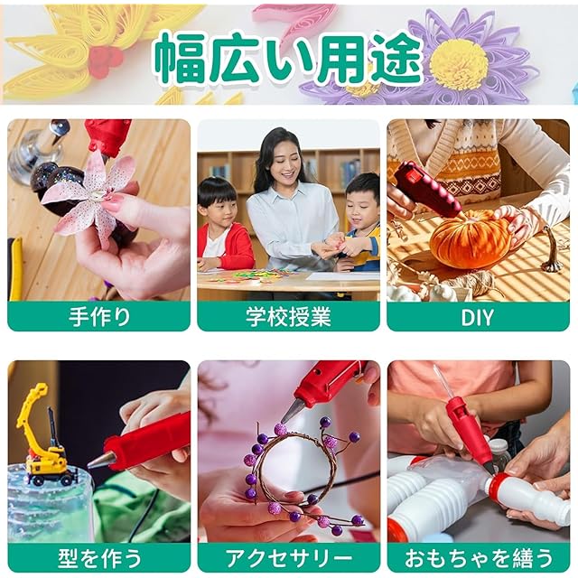 【コード式電源·小型軽量】プラグを差し込んですぐに使用できるので、電力量が低いため使用できない心配はありません。グルーガンのサイズは非常に軽量で、人間工学に基づいたデザインで、持ちやすく、小型軽量で、長期間使用しても疲れず、親子が幸せな時間を過ごすためのツールとして特に適しています。