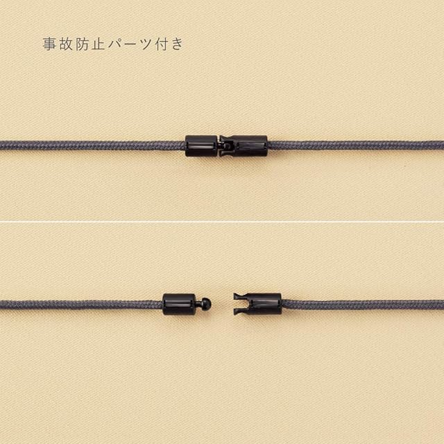 【材質】 ケース/PU合皮、中仕切り/ポリエステル、透明窓・事故防止パーツ/PP、ネックストラップ/PET・芯糸PP