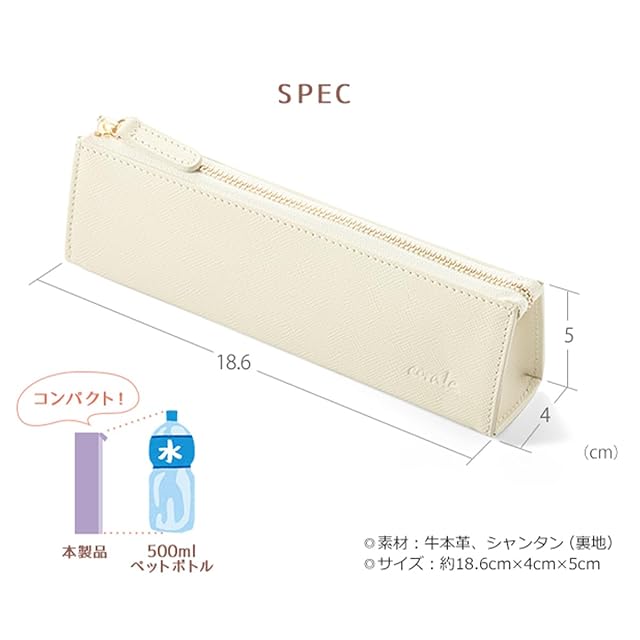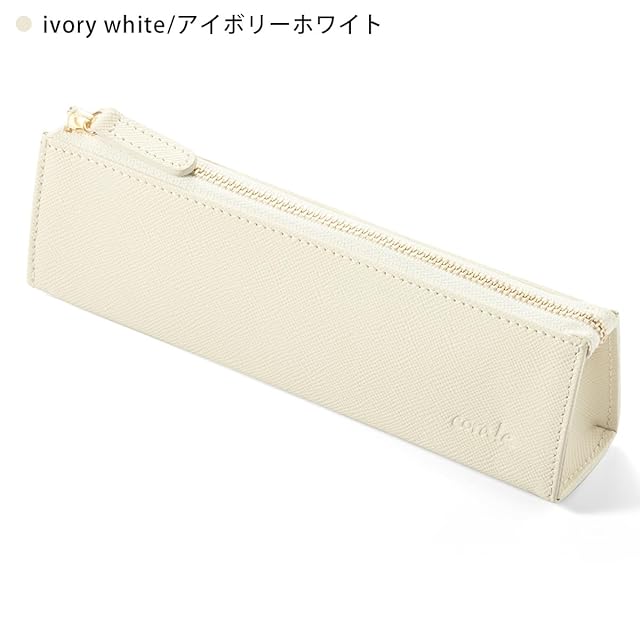 (コラーレ) corale ペンケース 革 レディース 三角 シンプル 大人 おしゃれ 本革 筆箱 ファスナー (アイボリーホワイト)
