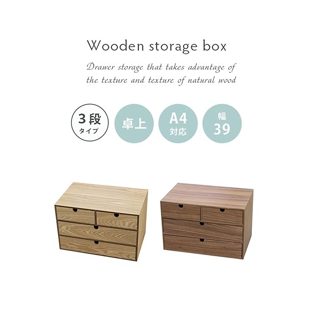 木製 収納ボックス 3段 引出し 卓上 ミニ チェスト 幅39 奥行25 高さ25 小物収納 文房具 A4 対応 書類入れ コスメボックス 化粧品 届いてすぐに使える [組立不要] 収納ケース ウォールナット 【 マナベ 】