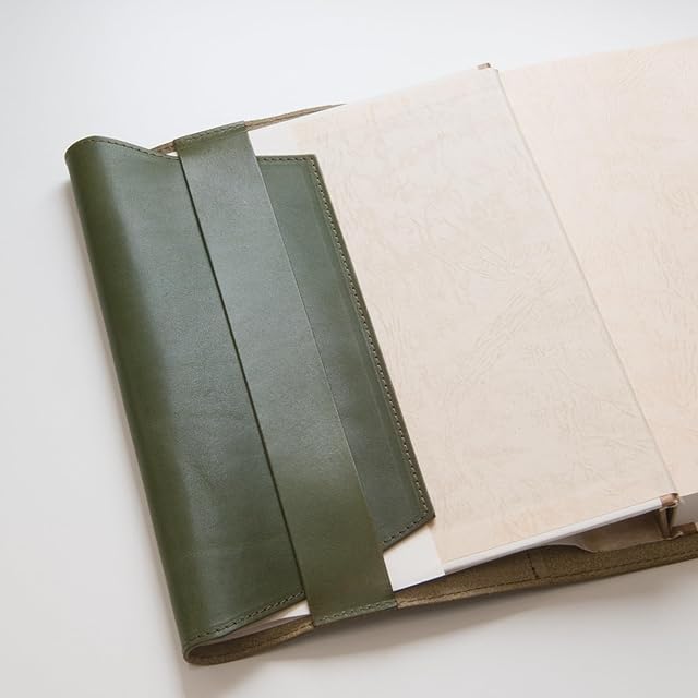 C&L TRASCO ブックカバー 本革 【日本職人仕上げClassic】滑らかな手触り 植物タンニンレザー (栞つき) (オリーブ, A5ハードカバー)