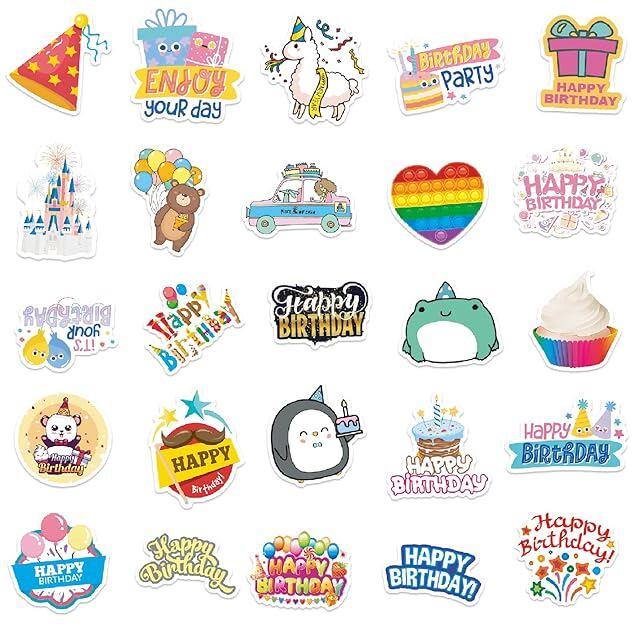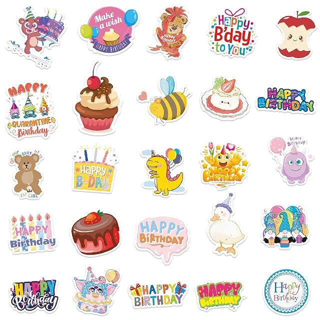 kolergam(店) 50枚お誕生日ステッカーセットおしゃれお誕生日シール防水可愛いお誕生日の願い事シールかわいいお誕生日おめでとうステッカー人気DIYステッカー自転車ノートパソコンスノボスケートボード荷物スーツケースギター水筒スマホケースカーバイクヘルメットなど用, SR-01210
