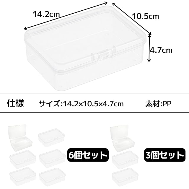 East Leaf クリアケース プラスチック パーツケース 小物 収納 蓋付き 長方形 14.2×10.5×4.7cm (クリア 3個セット)