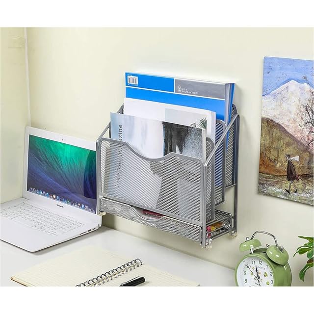 卓上収納ラック ファイルラック 多機能壁掛け書類ラック 書類トレー ラック A4 ファイルラック デスク上置き棚 新聞/雑誌/フォルダー/書類入れ 棚 新聞/雑誌/フォルダー/書類入れ (グレー)