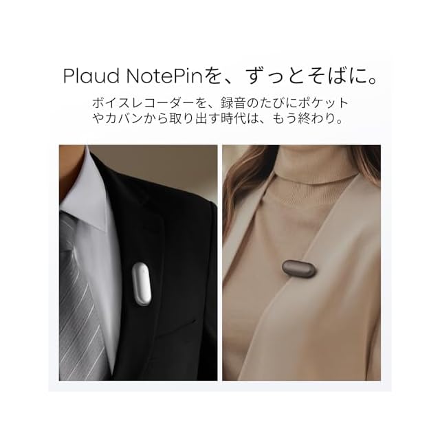 【NotePinを自由に装着】Plaud NotePin専用のマグネットピン・クリップは、NotePin本体を洋服やバッグなどに強力な磁力でしっかり固定することができます。両手を自由に保ちながら、スマートで快適な録音体験を楽しめます。
