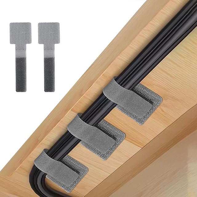 Neyiem ケーブルクリップ【革新・専門整理収納】デスク下のフックとループのケーブル管理 ケーブルタイ配線止め まとめる コード 配線 整理 強力接着式・剥がせる両面テープ 家庭、オフィス、車内など周辺で再利用可能なケーブル固定器(グレー)20個