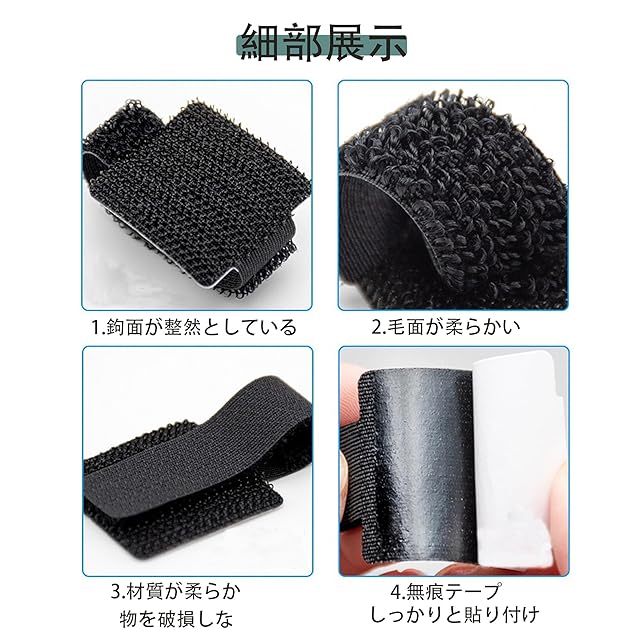 ✅【良質な材質】製品はナイロン製で、ソフトリング面の強力なフック面は密着して、密着度が強くて、緩みにくくて、耐摩耗性と耐久性が良くて、強い荷重に耐えて、繰り返し使用することができて、長時間使用することは心配ありません。