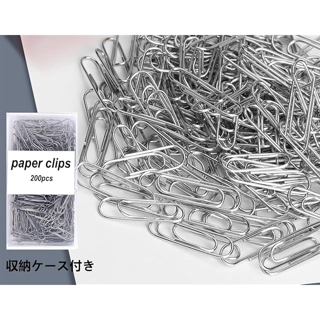 ペーパークリップ ゼムクリップ クリップ 書類整理 カラー シルバー銀色 200個入り 可愛い 大容量 収納ケース付 (シルバー)