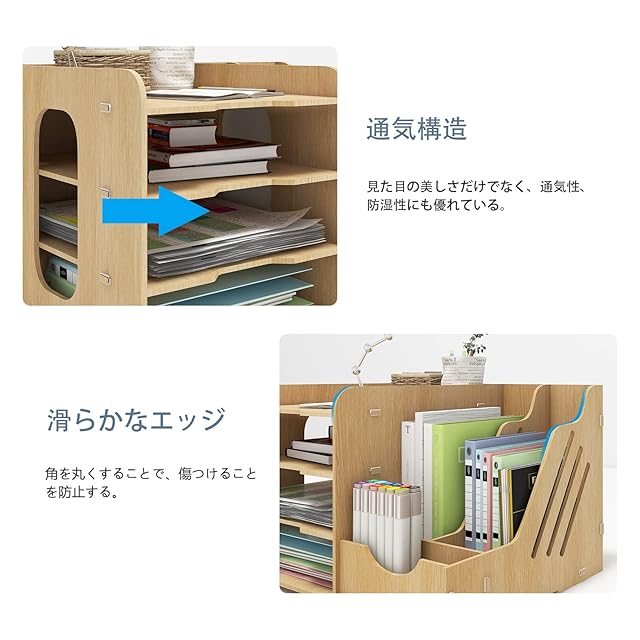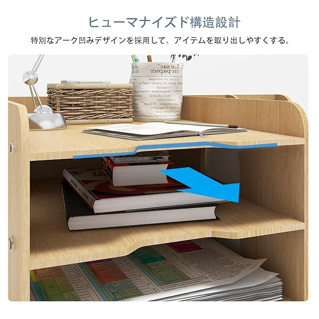 【細部にこだわり】机上書類整理ラックの棚板はアーク凹みデザインを採用しており、ファイルの取り出しが便利になります。中空構造で、書類をより識別しやすくするだけでなく、通気性を確保し、湿気から保護することもできます。