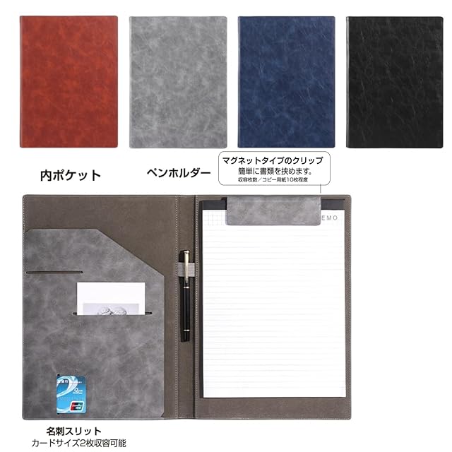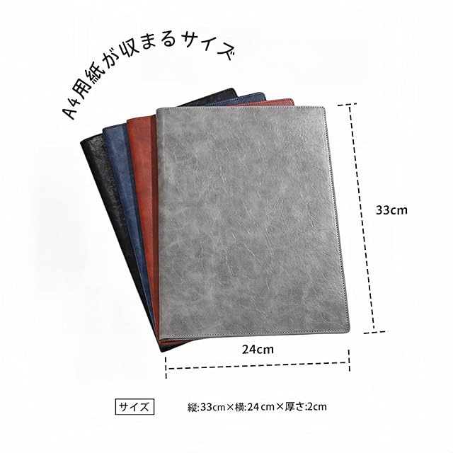【収容枚数】コピー用紙10枚程度 【材質】表紙生地:ポリウレタン 中芯:紙