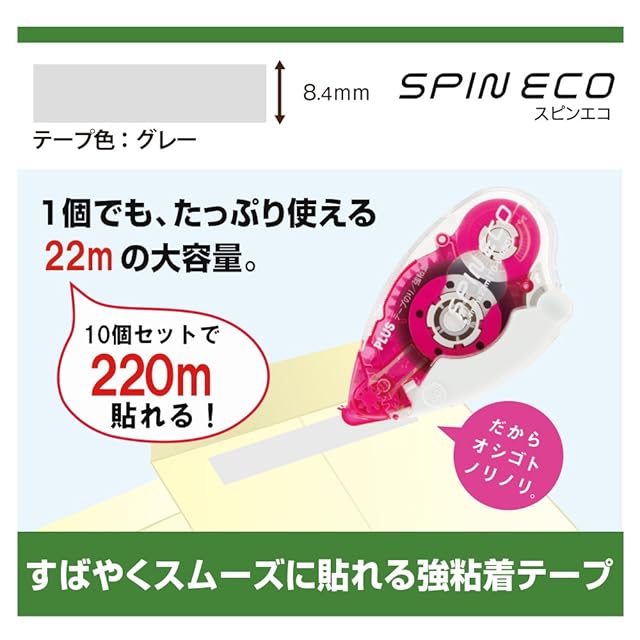 プラス テープのり スピンエコ 交換テープ 8.4㎜ 強粘着 ピンク 10個入 37-588×10