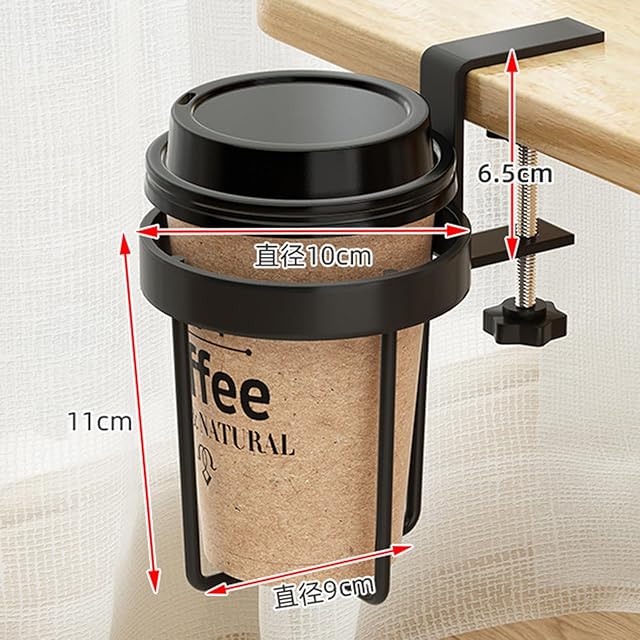 ドリンクホルダー カップホルダー デスク テーブル マグホルダー 机 机の下に収納できる クランプ式 取り付け簡単 金属製 スペース節約 テーブル収納 内径9cm(ブラック)
