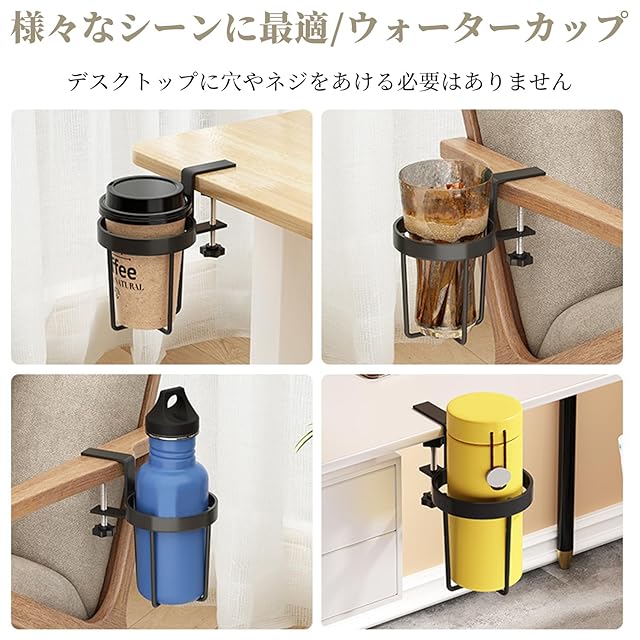 組立不要でデスク周りスッキリ:ドリンクホルダーは組立不要でクランプ部分をデスクに噛ませるだけでご使用できます。ご使用後はデスク上の物を減らせるため、PC周りをスッキリさせることができます。