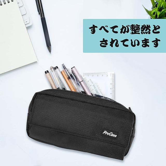 ProCase ペンケース 大容量 シンプル筆箱 ジッパー付き 学生用 社会人用 多機能 –ブラック