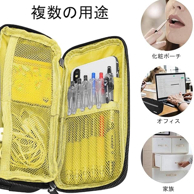 【多機能収納筆箱】4つメッシュのポケット付き、カード、メモ、常に使うペンを分けて収納でき、小物が探しやすくなります。携帯電話、イヤホン、スマートウォッチ、充電ケーブルなども収納できます。