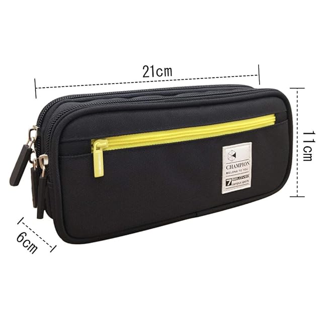 ペンケース 筆箱 大容量 筆ポーチ 帆布 - Akura - シンプル 多機能 学生用 社会人用 文房具 ダブルジッパー 内蔵ポケット付き ブラック