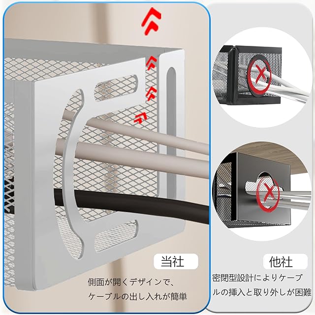 【美しいデザイン、実用的で便利】ケーブルトレイを効果的に整理し、プラグやルーターなどの機器をデスクの下に収納することで、デスクをより効率的に使用できます。ケーブルを曲げずに安全に通せます!このケーブル トレイを使用してケーブルを保管すると、オフィスの清掃、ケーブルの保管、配線の整理が容易になります。たとえば、ケーブル収納ボックスはキャビネットの下に調味料収納ラックとして使用したり、テーブルの前に置いてヘッドホンの充電ケーブルなどの小物を収納したりできます。