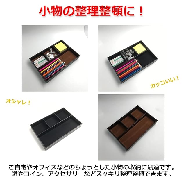 Modest Joy 高級レザー トレー 黒 デスク 収納 小物 仕切り 収納ケース PUレザー リビング オフィス おしゃれ