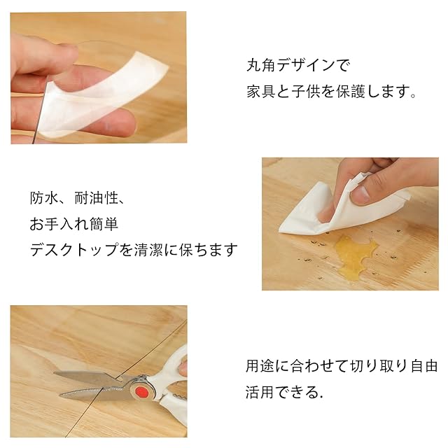 PVC製 透明 デスクマット、部屋の雰囲気を損なうことはありません!傷や汚れから保護できます.飲みこぼし・食べこぼしによる汚れ、お皿を落下で付いてしまう傷やへこみも、防止することが出来ます.