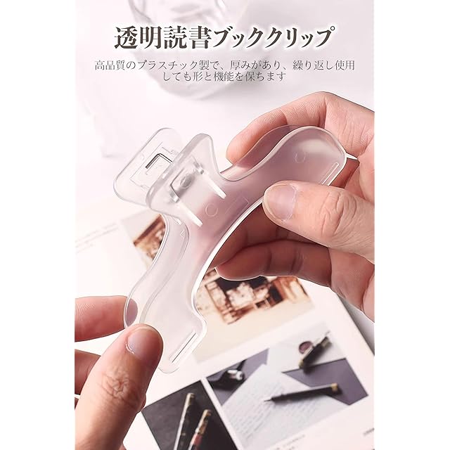 【クリアな視界】透明な曲線デザインにより、ブッククリップを使用しても本の内容が隠れることなく、スムーズな読書体験を提供します。視界を遮ることなく、快適に使えます。