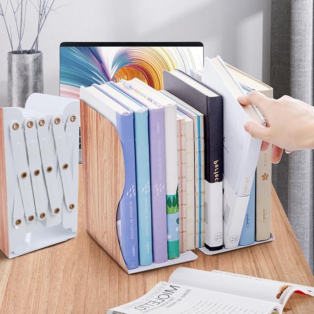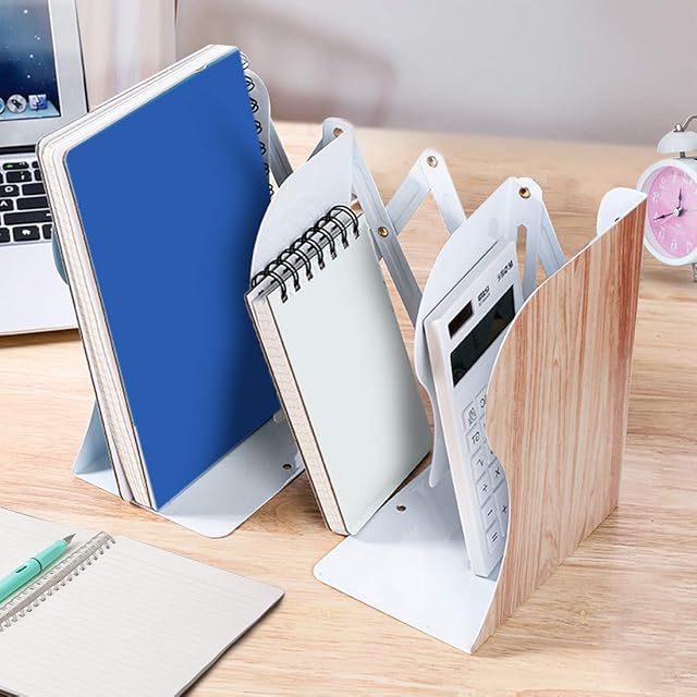 本立て 仕切り ブックスタンド 伸縮自在 デスク 収納 倒れない ブックエンド 金属製 仕切り スタンド デスク整理 卓上本棚 木目柄 (1個組)