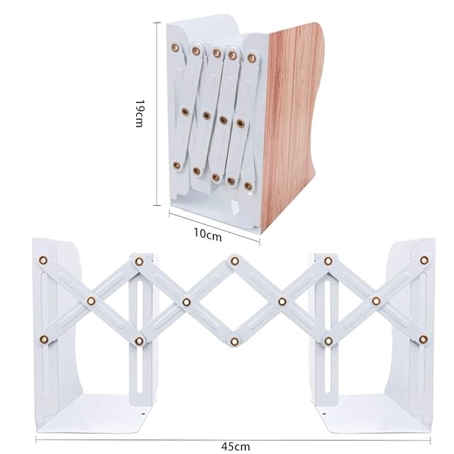 伸縮可能なブックエンド:45cmまで伸縮できます、本の数によって幅が自由に調整していただけます。二枚仕切り板があるので、本の種類によって簡単に分類して、取り出しも便利です。