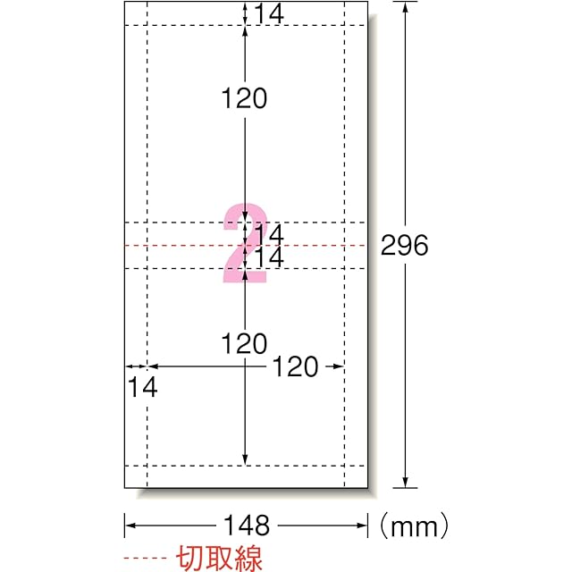 A4判変形 2面/シートサイズ:(148mm×296mm)/カードサイズ:120mm×120mm(1列×2段)