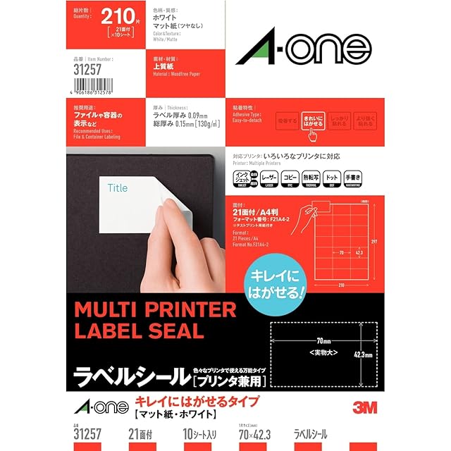 エーワン ラベルシール キレイにはがせる A4 21面 10シート 31257