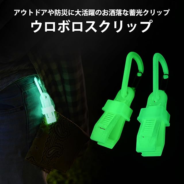 OUROBOROS ウロボロス クリップ 蓄光 光る 防災 停電 グッズ マルチクリップ 強力 固定 多機能 日本製 (朧,1個)
