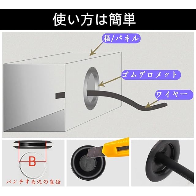 【穴調整可能】グロメットは、コードを締めたり緩めたりするさまざまな直径を提供します。必要に応じて中央に穴を開けてください。あらかじめ作られたスロットで、穴を開けるのは簡単です