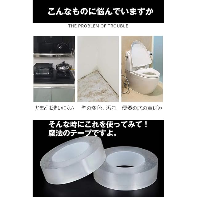 マスキングテープ 防カビ 透明 防水テープ 防カビテープ 補修テープ 台所コーナーテープ コンロの隙間テープ キッチン すきまテープ カビ汚れ防止 防水 防油 強粘着 耐熱 のり残らず 繰り返し 強力 多機能 キッチン コンロ 浴室 洗面台 隙間 カビ予防テープ 家事時短