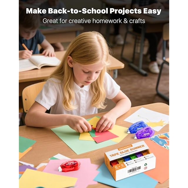 両面テープのり 6本セット:幅8mm×長さ合計約54m(全6巻・1本あたり約9m)の大容量パックで、スクラップブッキングからラッピングまで幅広く活用可能。カラフルな6色展開で、貼るだけで作品に華やかさをプラス。