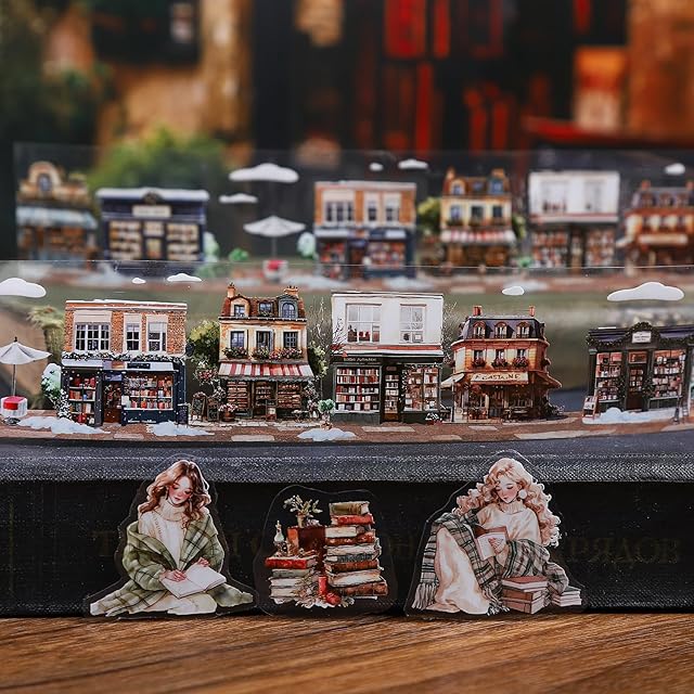 Alideco 6個 マスキングテープ かわいいロレトロ文学少女を読む 透明な耐水性 インク PET 粘着 テープ 広幅 DIY おしゃれ マステ シール (gongdushiguang)