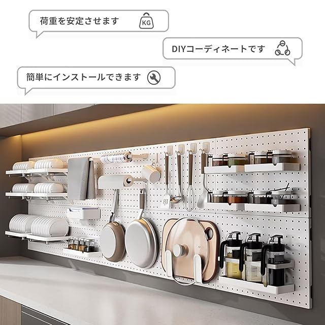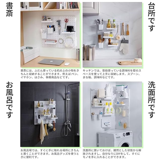 有孔ボード壁 棚 壁面収納 ウォールラック 収納ラックです 穴板&パーツ組み合わせDIY たいかじゅう10KG 強粘着 固定 壁 取り付け デスク収納ラックです 玄関、寝室、書斎、オフィス、キッチンに適 (幅84×高さ84cm)