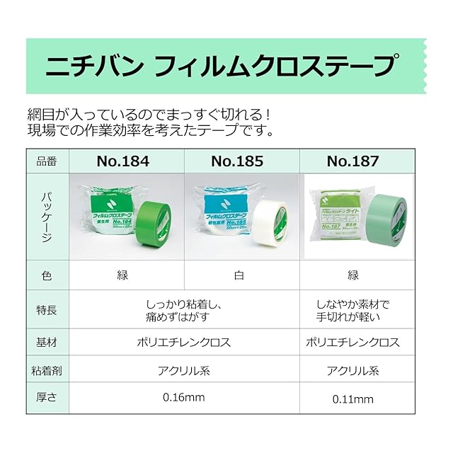 ニチバン フィルムクロステープ 養生テープ No.187 50mm×25m 緑 187-50
