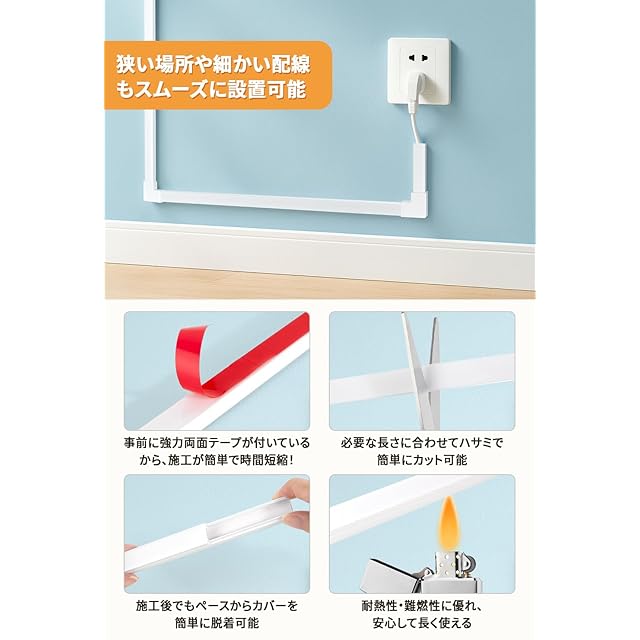 【ハサミで簡単カット・精密な配線管理】 1本あたり30cmなので、まるでブロックのように組み合わせて使えます。ハサミやカッターで簡単にカットでき、長さ調整もらくらく。配線を壁や床に沿わせてぴったり収められ、見た目もすっきり整います。