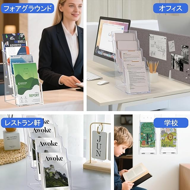 【多用途チラシラック】私たちのパンフレットラックは雑誌、パンフレット、パンフレット、メニュー、定期刊行物などを秩序立てて展示することができます。オフィスや病院の受付、ホテルの案内スペース、展示会場、店舗の販促用など、多彩な場面で活躍。