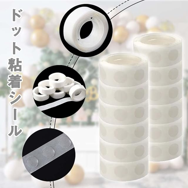 セット内容:100個/巻、12巻。風船どうしをくっつけられる風船用の両面テープです。強力なシールなので、壁や天井にも貼り付けが可能です。 バルーンテープは、詰まってバルーンをお気に入りの形に形作るのに役立ちます。