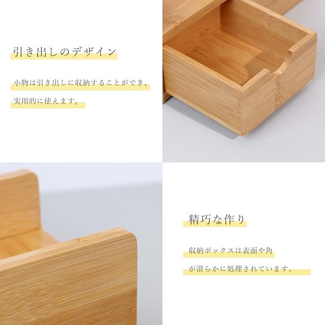 ✅【商品の仕様】サイズ:22.5*12*11cm、引き出しサイズ:11*9.7*5cm; 材質:竹製;頑丈で品質の高い竹で作られ、防錆、防蝕、耐久性もあり、長持ちする収納ボックスです。さらに竹は最小限の土地で繰り返し利用できる画期的な天然資源で、環境問題・温暖化問題の一因である森林伐採を食い止め、有効な資源活用法の一つであると言えます。
