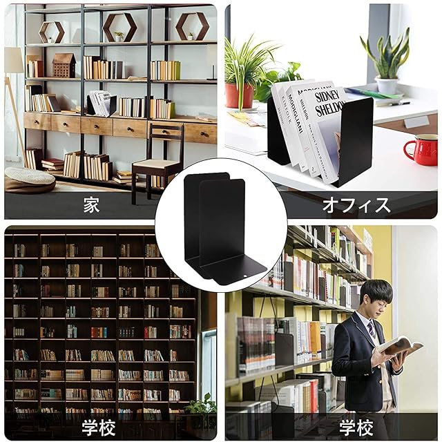 【シンプルなデザイン】真っ黒でシンプルL型ブックエンドは飽きのこないなデザインです。とてもおしゃれでディクス、本棚、机をきれいに収納でき、どんな場所でもうまく飾られます。
