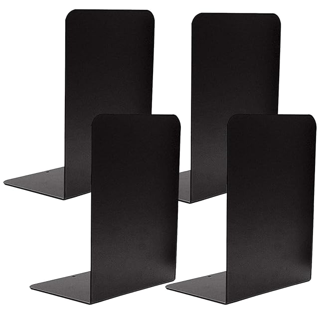 ブックエンド ブラック 金属製 本立て 2セット (4枚入り) GOH DODD 倒れない 滑らない ブックスタンド 卓上収納 仕切り デスク整理 文房具入れ 新聞 書類 ファイル 雑誌 CDの整理用 スタンド 事務用品 文房具