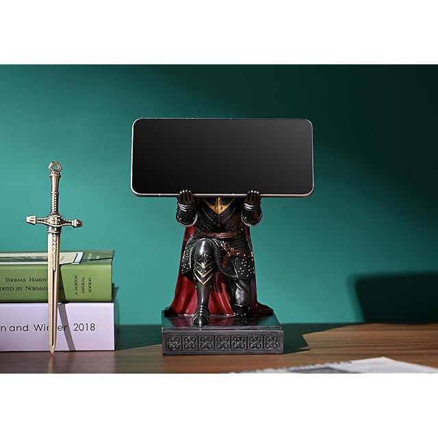 HDMbigmi キングズガードリーダークロークウォリアーナイトペンホルダー携帯電話スタンド、オーナメントナイト像、ペンスタンドペーパーウェイト オフィスや自宅用(鉄)
